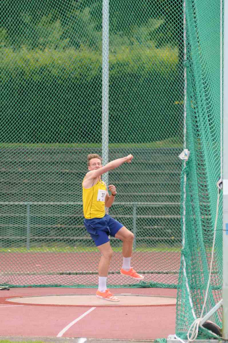 Auch Mehrkämpfer Loke Sommer (U18, LG Flensburg/ LK Weiche) steigerte sich zu einer neuen PB mit der 1,5kg schweren Scheibe auf 39,50m, warf den Speer auf eine neue pB von 53,06m und übersprang mit 1,77m eine neue pB im Hochsprung. Den lautesteten Freudenschrei gab es zurecht von Speerwerfer Florian Walther (M, LG Flensburg/ LK Weiche) zu hören, der erstmalig die 60 Meter-Marke durchbrach und bei drei Würfen über diese Linie am Ende 61,45m stehen hatte. Stark waren ebenfalls Nina Reincke (U18, Bredstedter TSV) die 42,97m mit dem Speer erreichte.