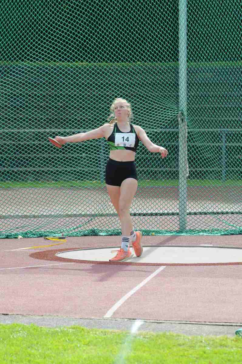 Flensburg – Bei bestem Leichtathletikwetter fanden im Flensburger Stadion die Bezirksmeisterschaften der Kreise Nordfriesland, Schleswig-Flensburg und Flensburg statt. Mit 60 Teilnehmern waren die Felder eher klein, was aber nichts über die Qualität aussagte. Ganz im Gegenteil: Als eine der herausragenden Leistungen warf im Diskus Janne Petersen-Feddersen(F, Bredstedter TSV) eine neue persönliche Bestleistung von 43,64 m. Einen neuen Landesrekord warf die Gastwerferin der LG Neumünster Emily Scherf (u16) mit 36,80m.