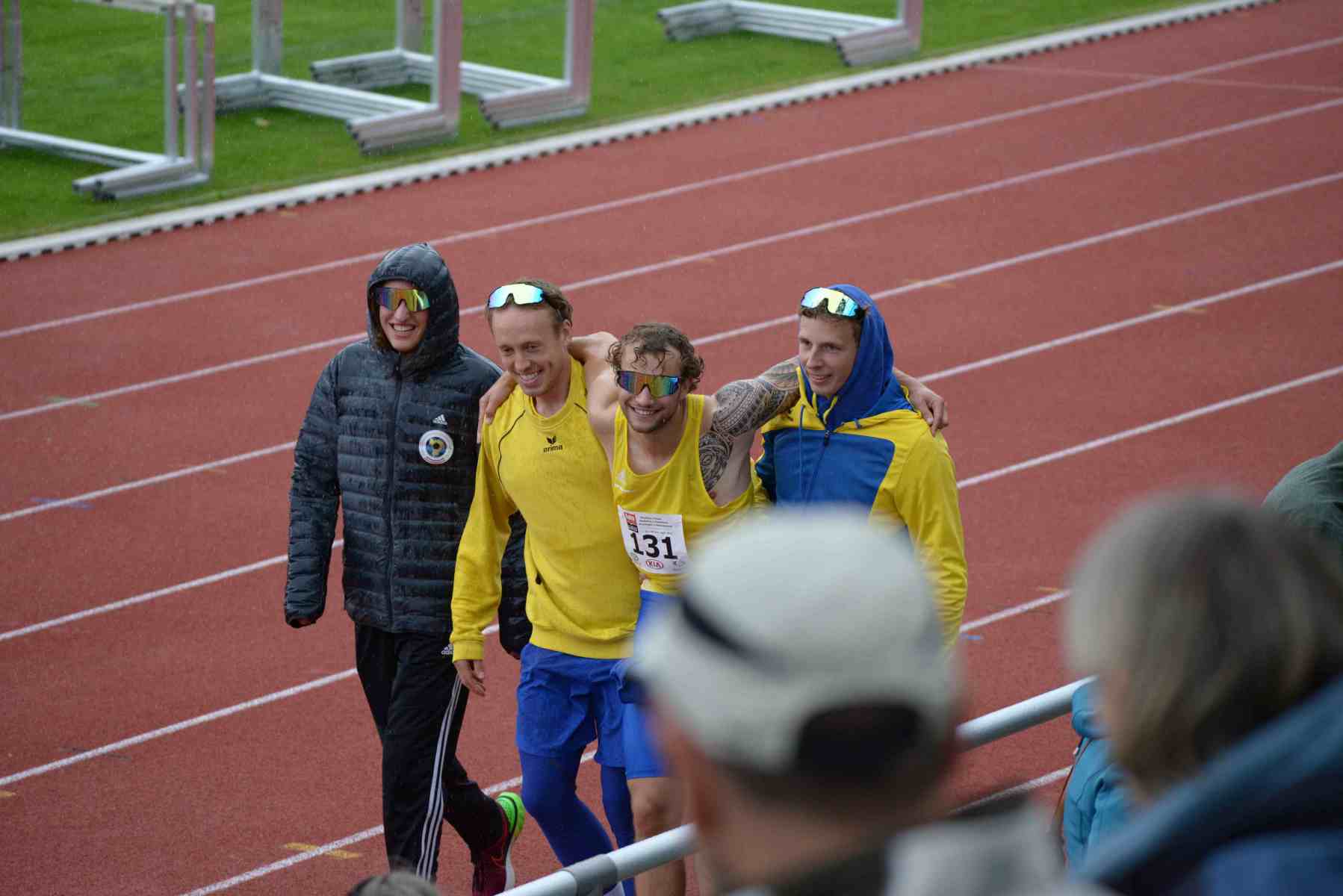 Überraschend Gold gab es für das Männerteam, welches mit der Erfolgsstaffel Florian Walther, Loke Sommer, Anton Temme und Fynn-Niklas Leibel in den Wettkampftag startete und auch in 44,83sec die erste Disziplin gewann. Anton Temme (Weitsprung 6,04m), Fynn Niklas- Leibel (100m 11,58sec), Florian Walther (Hochsprung 1,74m) und Morten Zern( Kugel 11,05m) konnten sich gut im Feld der anderen Teams behaupten. Beim abschließenden 1500m-Lauf waren sie punktgleich mit der favorisierten Mannschaft der StG Holstein Jugend. Loke Sommer konnte mit einem taktischen Rennen in 4:27,9min den Sieg für das blaugelbe Team nach Hause holen.