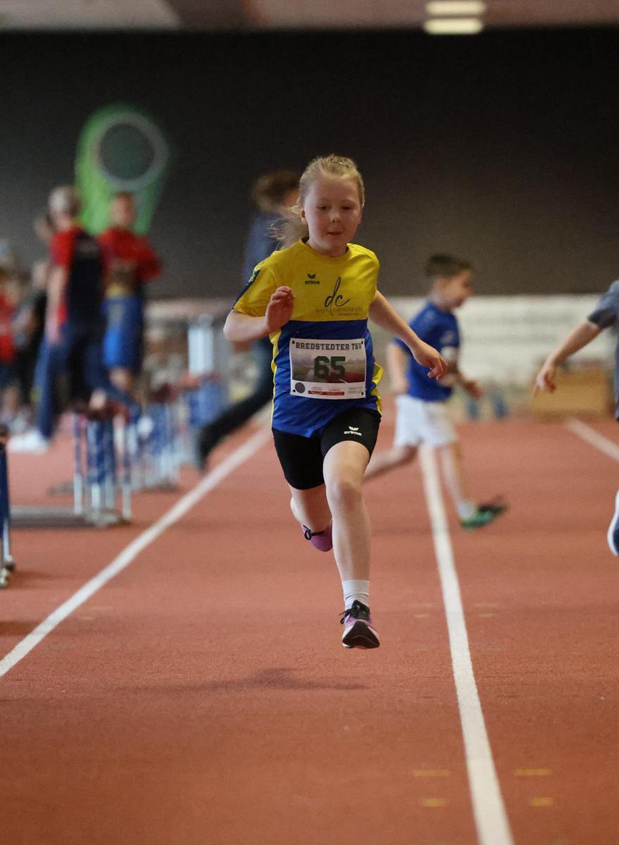 Am 22. Februar 2025 reisten 21 Flensburger Athleten der Altersklassen W/M 6 bis W/M 13 nach Bredstedt und gingen an den Start vom Mini-Sportfest, um ihr Können unter Beweis zu stellen. Dabei stand ein Vierkampf, bestehend aus den Disziplinen 50m Sprint, 50m Hürden, Weitsprung und Schlagballwurf auf der Agenda.