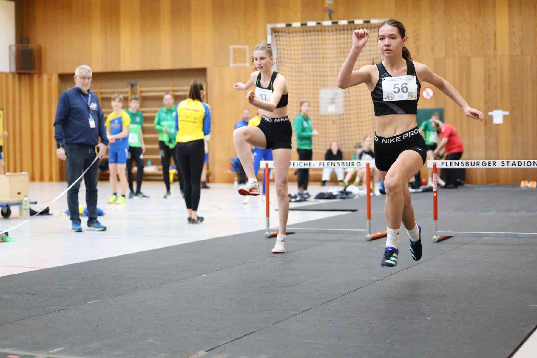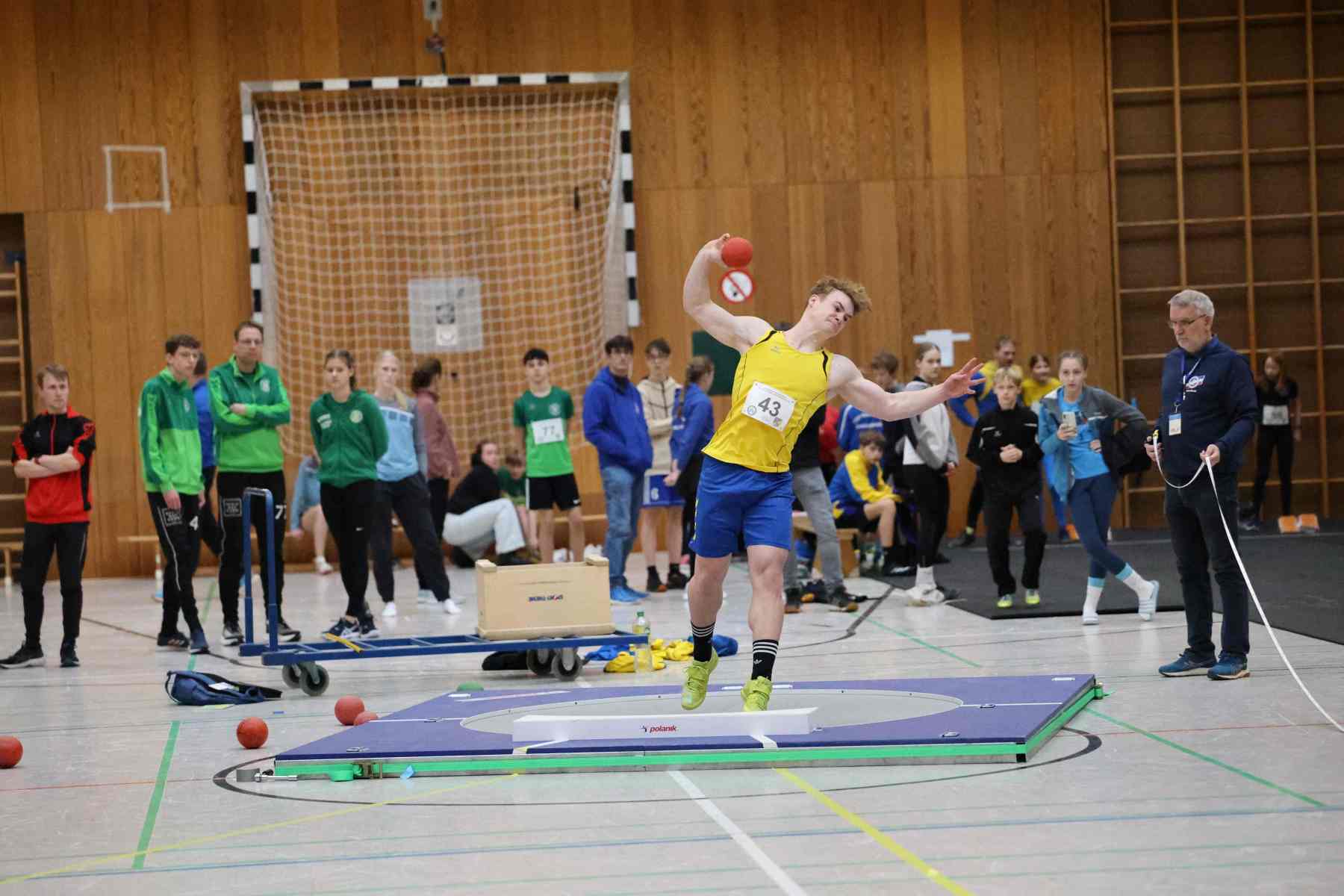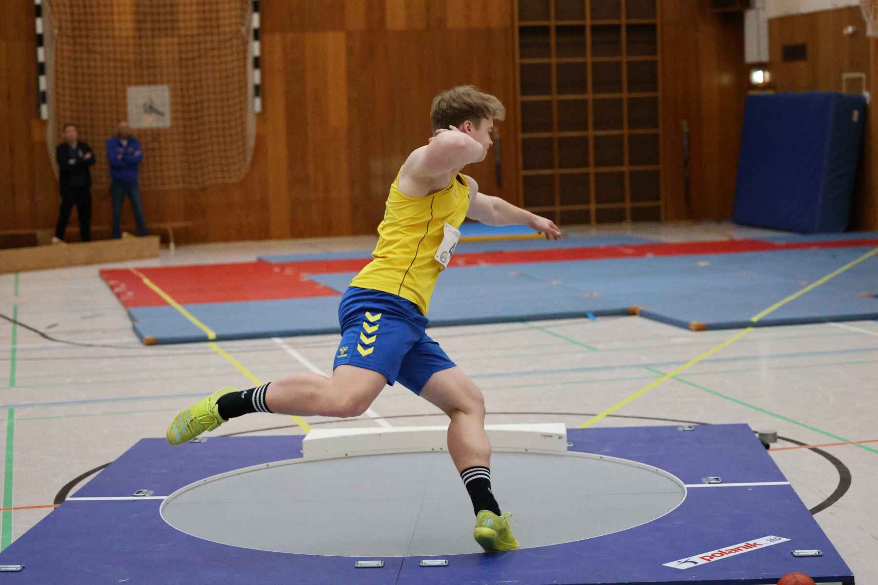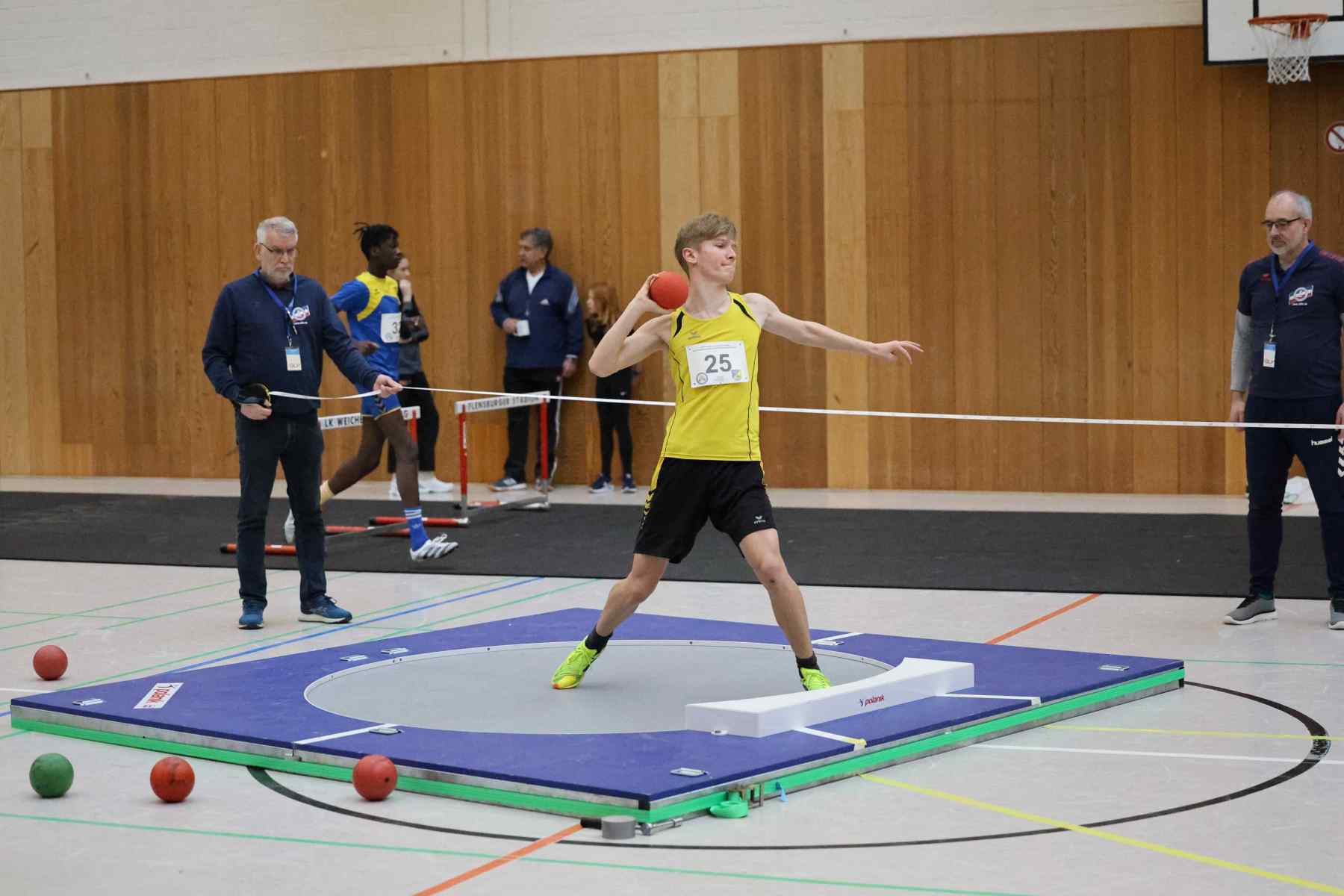 Im Kugelstoßen setze Jorge Reitz (LG Flensburg) mit 14,18m gleich in der ersten Disziplin ein Ausrufezeichen und gewann mit persönlicher Bestleistung und über 4 Metern Vorsprung vor dem Zweitplatzierten. Die schnellste Zeit des Tages lief Vincent Abild (M, TSV Fahrdorf) in 7,65sec über die 60m. Im Stabhochsprung übersprang Volke Lüttkopp (LG FL) mit 3,30m eine beachtliche Höhe, Marek Carstensen (U18) überquerte 2,90m, der im Hürdensprint mit guten 9,32sec ebenfalls siegte. In der Altersklasse W14 gewann Marie-Luise Wendel (TSV Glücksburg 09) gleich drei Disziplinen. Im Hürdensprint lief die 60m-Distanz in 10,126sec, gewann mit 7,93m das Kugelstoßen und lief über 60m in 8,61sec zum Sieg.