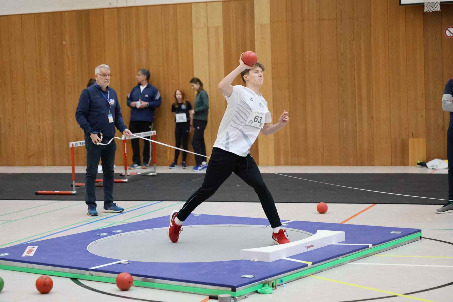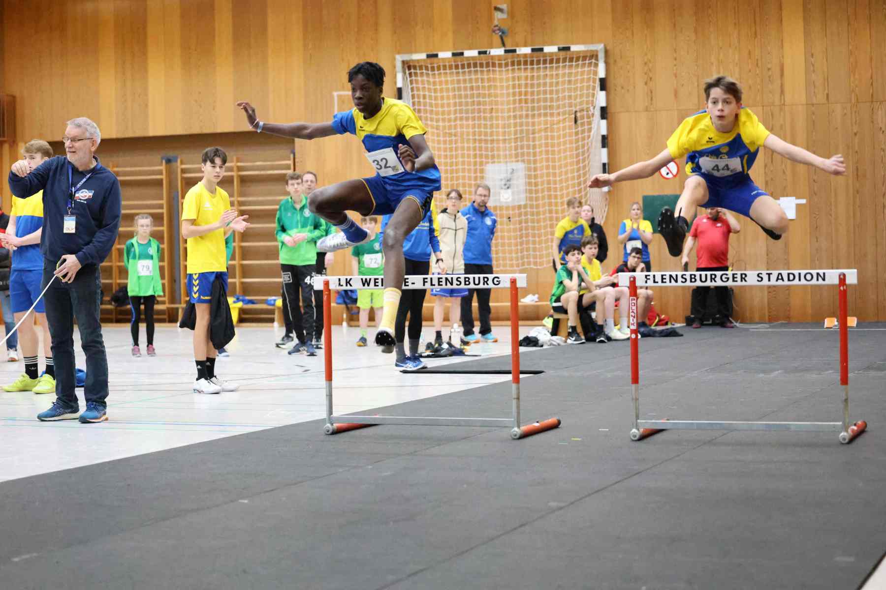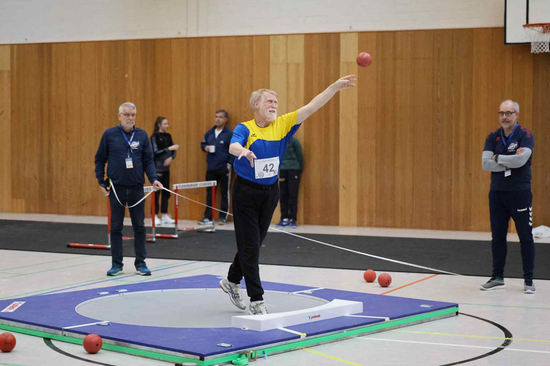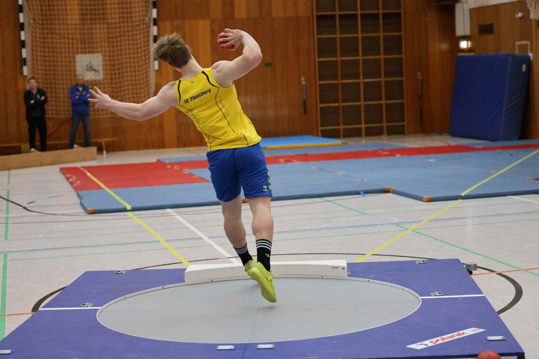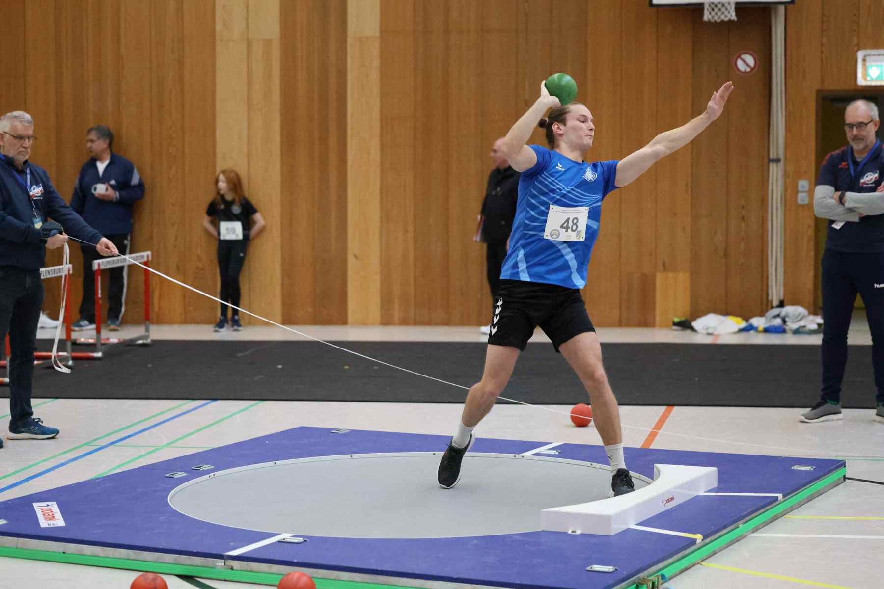 Im Kugelstoßen setze Jorge Reitz (LG Flensburg) mit 14,18m gleich in der ersten Disziplin ein Ausrufezeichen und gewann mit persönlicher Bestleistung und über 4 Metern Vorsprung vor dem Zweitplatzierten. Die schnellste Zeit des Tages lief Vincent Abild (M, TSV Fahrdorf) in 7,65sec über die 60m. Im Stabhochsprung übersprang Volke Lüttkopp (LG FL) mit 3,30m eine beachtliche Höhe, Marek Carstensen (U18) überquerte 2,90m, der im Hürdensprint mit guten 9,32sec ebenfalls siegte. In der Altersklasse W14 gewann Marie-Luise Wendel (TSV Glücksburg 09) gleich drei Disziplinen. Im Hürdensprint lief die 60m-Distanz in 10,126sec, gewann mit 7,93m das Kugelstoßen und lief über 60m in 8,61sec zum Sieg.