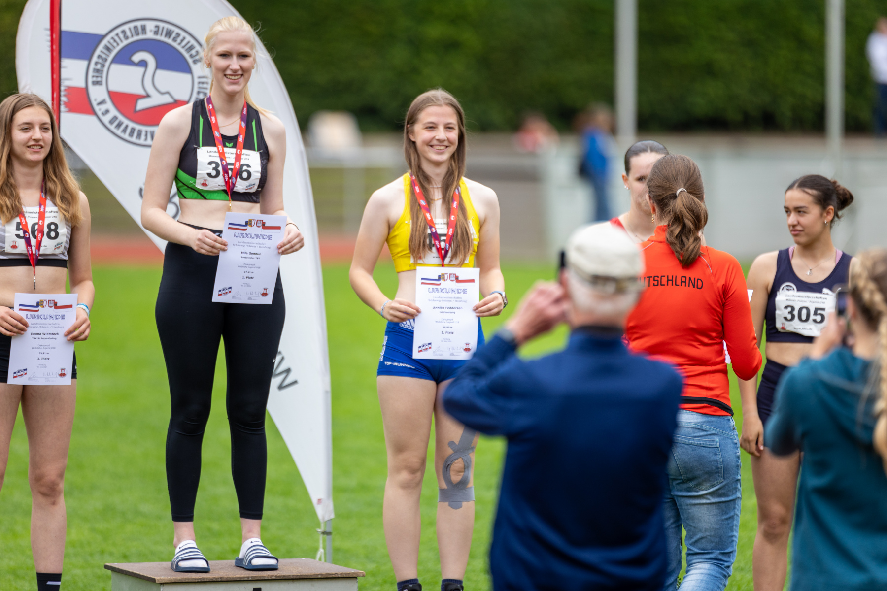 Jorge Reitz sicherte sich souverän den Landesmeistertitel im Speerwurf der U18 mit einer Weite von 54,21 Metern und gewann zudem im Diskuswurf mit 38,69 Metern die Bronzemedaille. Seine Vielseitigkeit und Stärke machen Hoffnung auf seine Deutschen Meisterschaften, für welche er die Qualifikationsnorm bereit früher im Jahr überboten hat. Unsere vielseitige Werferin Annika Feddersen belohnte sich im Diskuswurf mit einer Weite von exakt 25 Metern und erhielt dafür die Bronzemedaille.